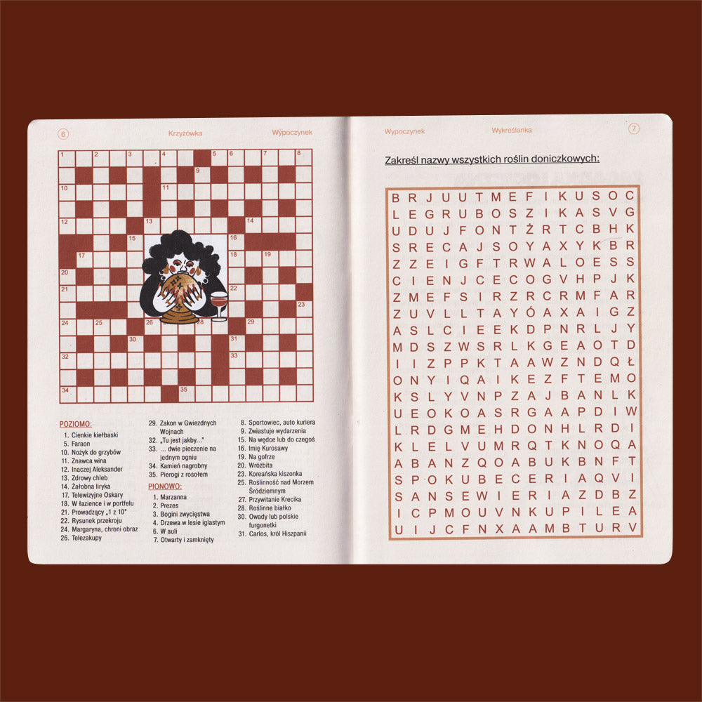 Papier: 90 gram – grubszy niż w zwykłych krzyżówkach, żeby można było łatwiej rozwiązywać je na kolanie czy na plaży.